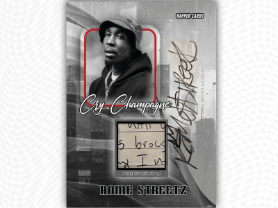 Rome Streetz is one of the finest lyricists around, so we knew he was perfect for a Rhymebook Card. Owners of the “Cry Champagne” Rhymebook Card will possess a unique piece that features a piece of the actual hand-written lyric sheet for the KISS THE RING standout embedded in each card, as well as an on-card autograph. All cards are hand numbered. Only 100 Cry Champagne Rhymebook Cards are available.